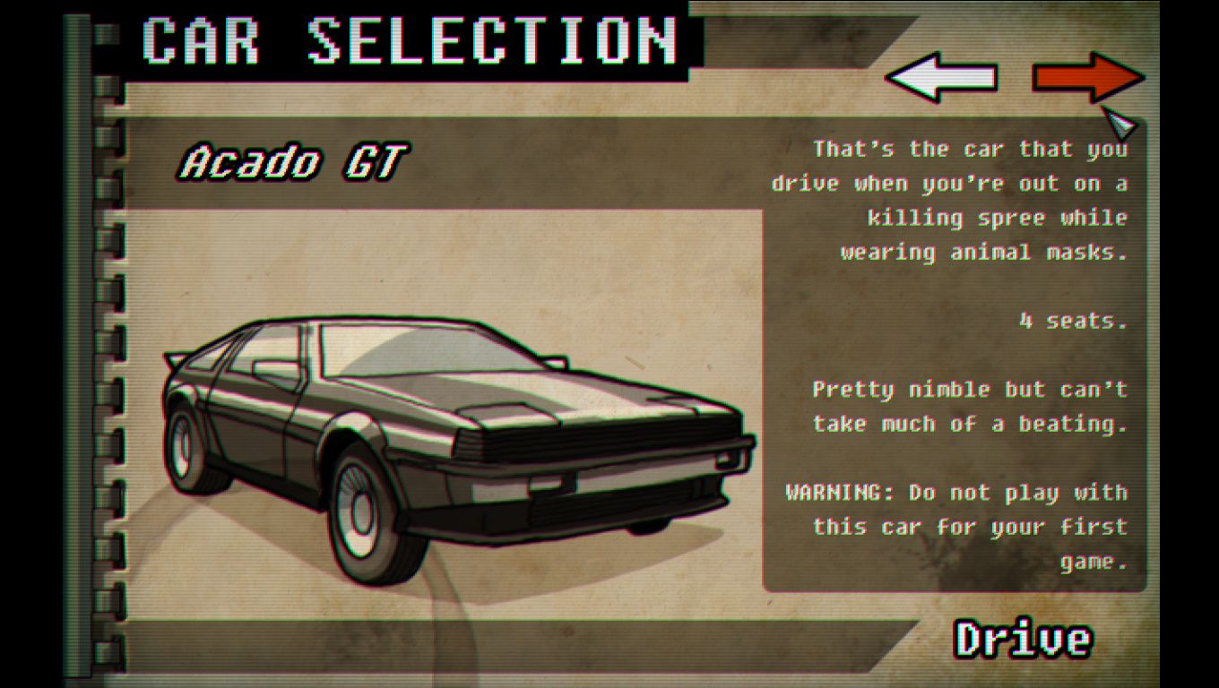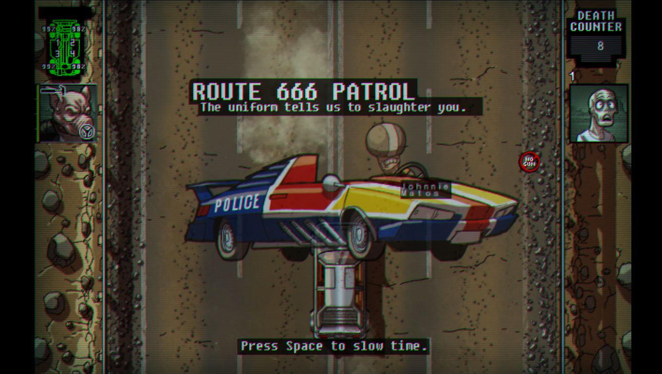 В Death Skid Marks вас ждет 666 трудных и опасных километров, которые нужно преодолеть на оснащенных разнообразным вооружением автомобилях. А все из-за очень крутого концерта, на который вы просто не можете не попасть. Напишу по секрету, что ходят слухи если пройти игру на лучший счет, тогда вас ожидает весьма приятный бонус в виде бронированного танка. Соберите свою профессиональную команду, время от времени занимайтесь ее улучшением, оснастите каждого ее участника оружием и специальным оборудованием, а так же решите кому и что нужно делать. Особое внимание конечно же нужно уделить выбору автомобиля, ведь от этого очень многое зависит, от количества пассажирских мест до всевозможных уникальных свойств.