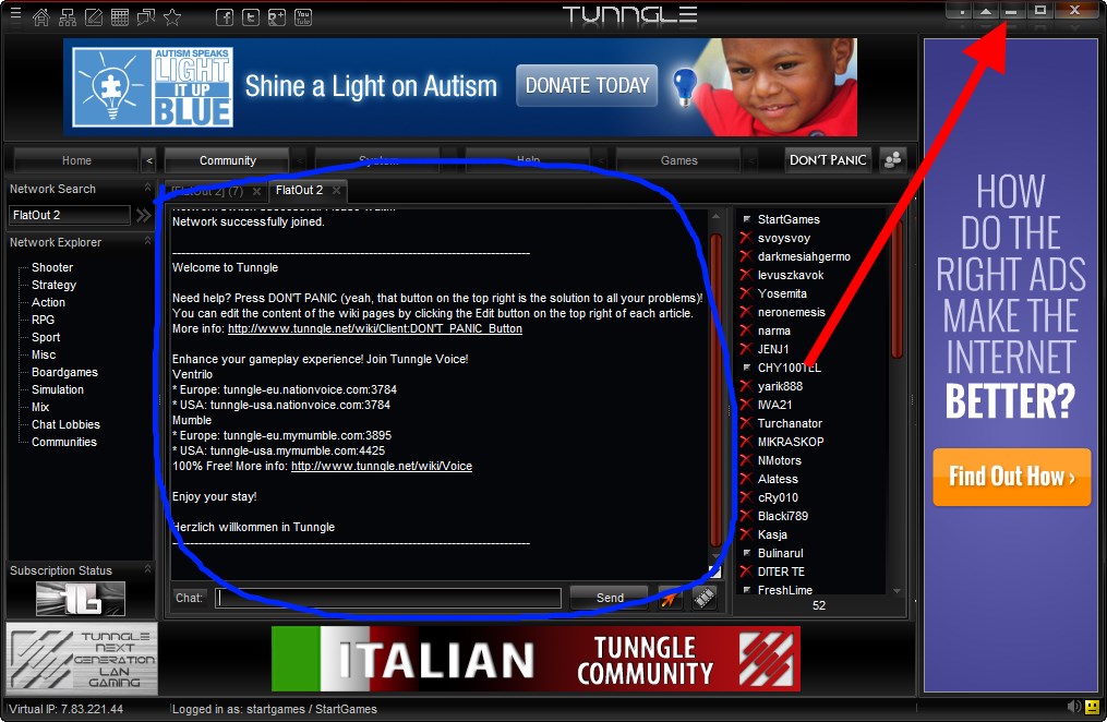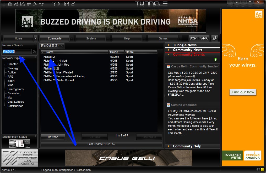8. Сворачиваем Tunngle и запускаем игру FlatOut 2. Дальше по пунктам: Сетевая игра — Локальная сеть — Присоединиться. Появится список серверов, выбираем который больше нравится и подключаемся. Играем =)