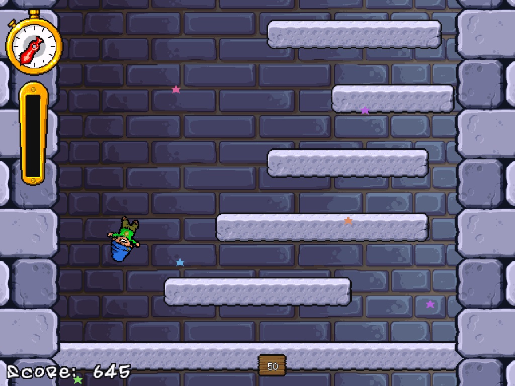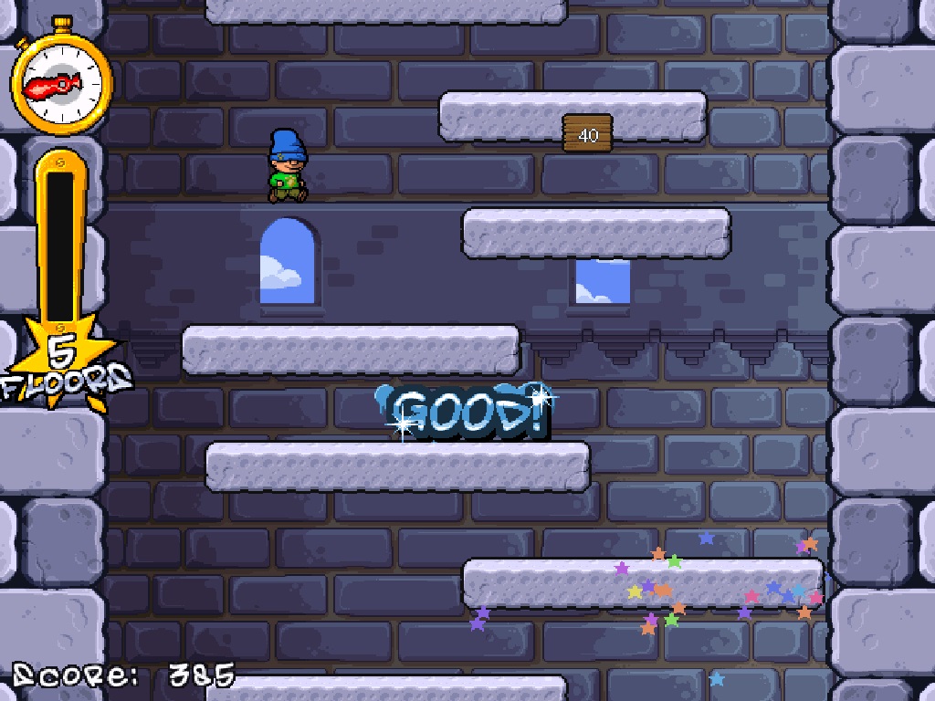 в стиле - все выше и выше. Ваша задача состоит в прыганье вверх по платформам башни. Но не все так просто, ведь размер платформ с каждым уровнем уменьшается, тем самым стает все сложнее попадать на них, в то время как скорость подъема все растет и растет. В игре есть только одна цель - добраться как можно выше и соответственно набрать как можно больше очков. Во время перепрыгивание с платформы на платформу, можно использовать комбо прыжок, с помощью которого игровой персонаж прыгает очень высоко и при этом делает красивое сальто.