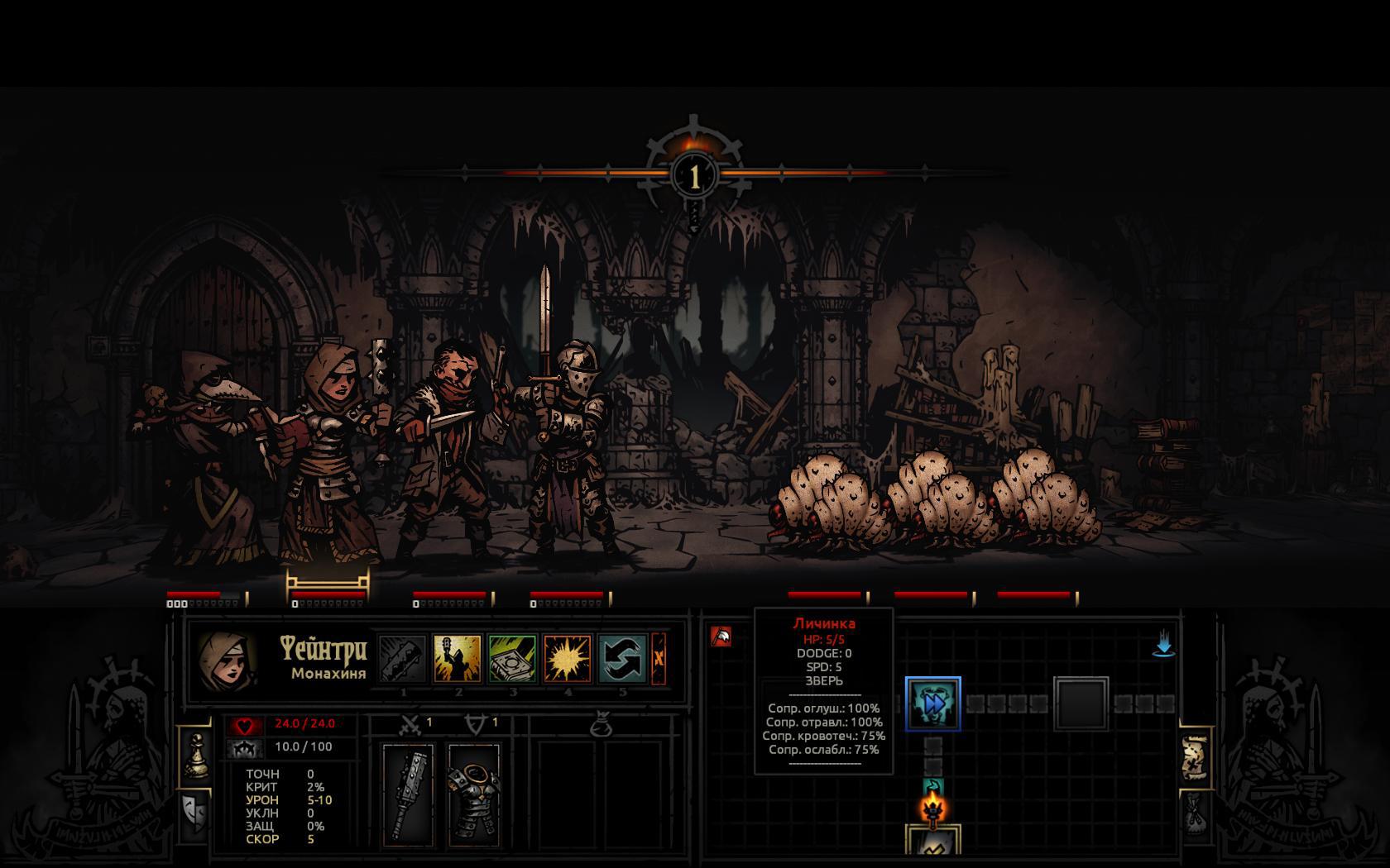Darkest Dungeon — пошаговая PRG стратегия, разработанная Red Hook Studios. На мой взгляд, главной особенностью является графика, выполненная со стилизацией под комиксы. Уникальность Darkest Dungeon заключается в психологическом и эмоциональном состоянии персонажей, которых вы, кстати, берете под свою опеку. Герои обладают считай что человеческими качествами, такими как страх, неуверенность и прочее. Заходя в данж, кишащий всяческими монстрами персонаж просто — напросто испугается, что снизит его боевые умения и способности. Все это разносторонне влияет на геймплей. Но и как любой человек, герой в состоянии перебороть свой страх, все чаще встречаясь с монстрами и опасностями.